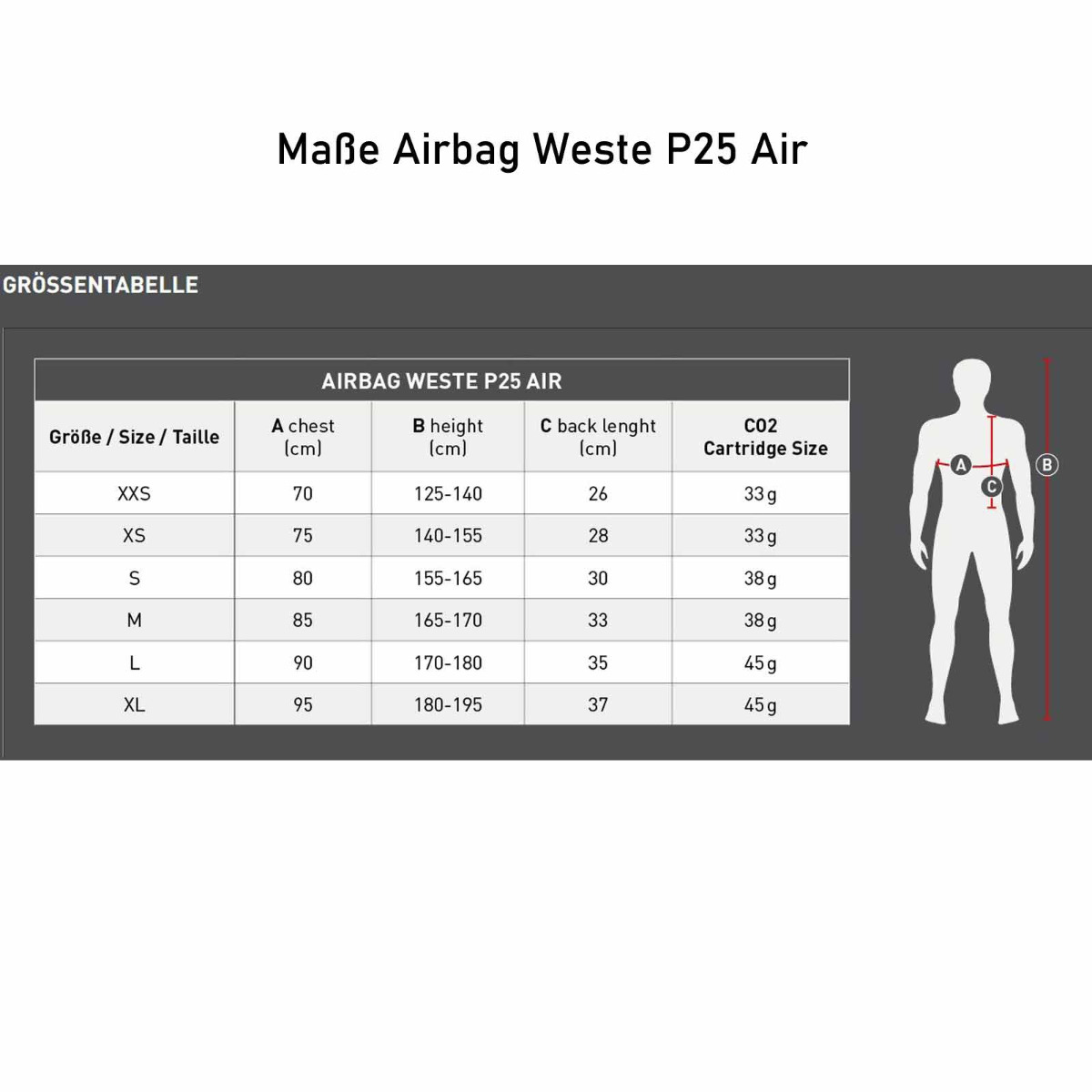 Das Airbag-System schützt besonders gefährdete Körperbereiche wie Nacken, Brustkorb, Rücken, Steißbein und Becken.